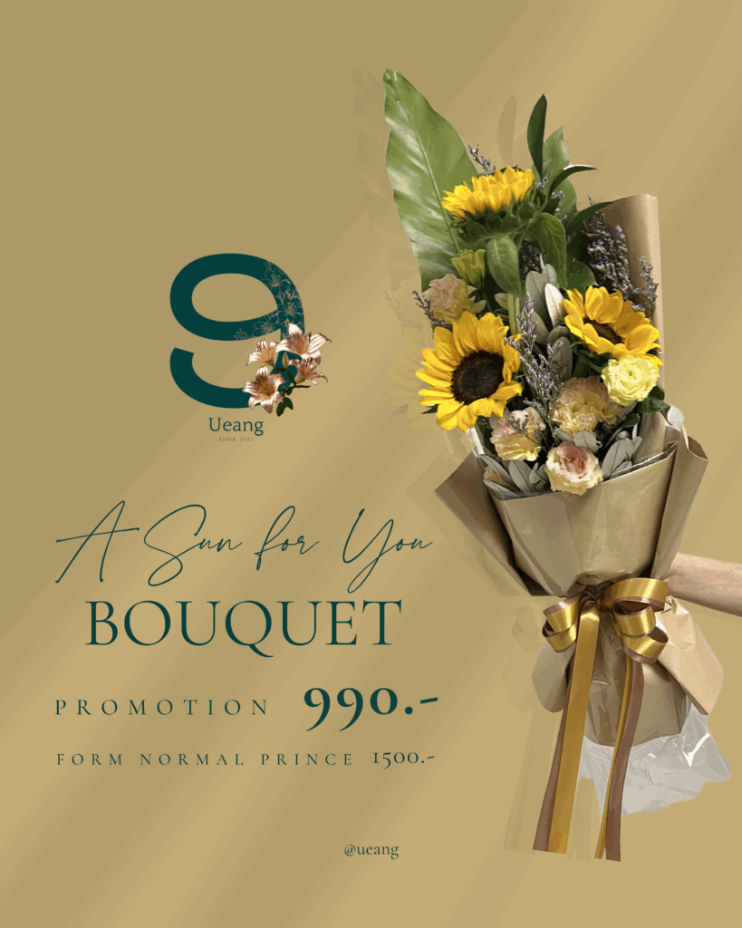 ช่อทานตะวันดีไซน์พิเศษจากร้านเอื้อง จากราคาปกติ 1,500 บาท เหลือเพียง 990 บาท บริการส่งฟรีทั่วกรุงเทพฯ