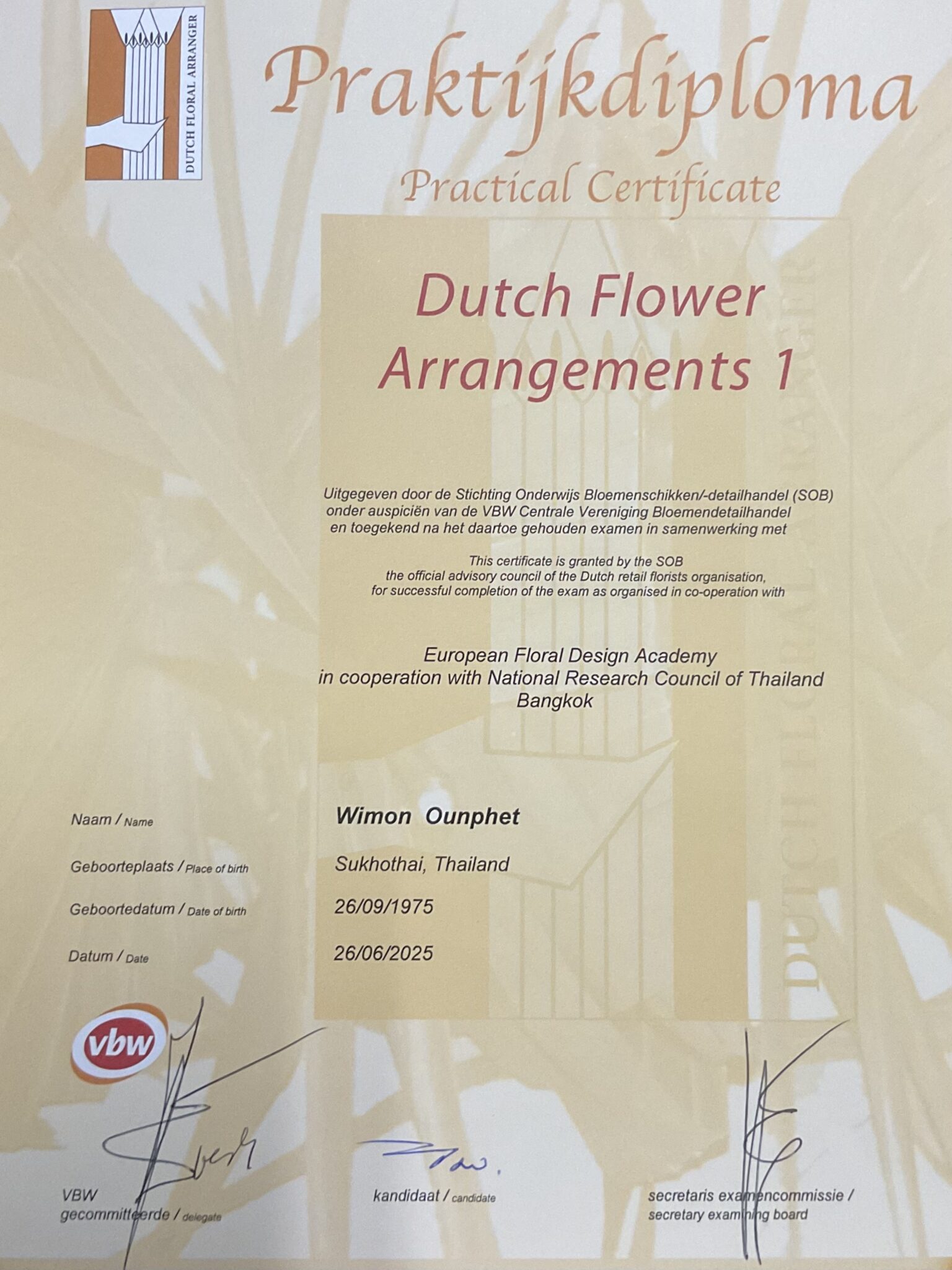 ได้รับการรับรองการสอนจัดดอกไม้จากนานาชาติ